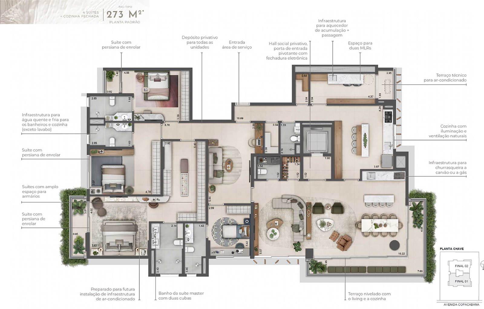 UNIDADES PREPARADAS PARA FUTURA INSTALAÇÃO DE INFRAESTRUTURA DE AR-CONDICIONADO NOS DORMITÓRIOS E NAS SALAS (G)