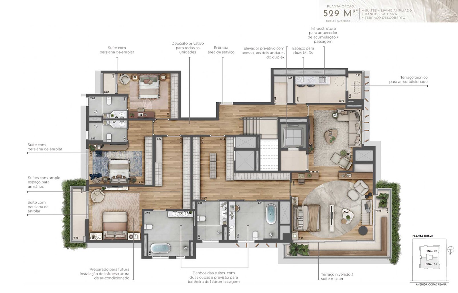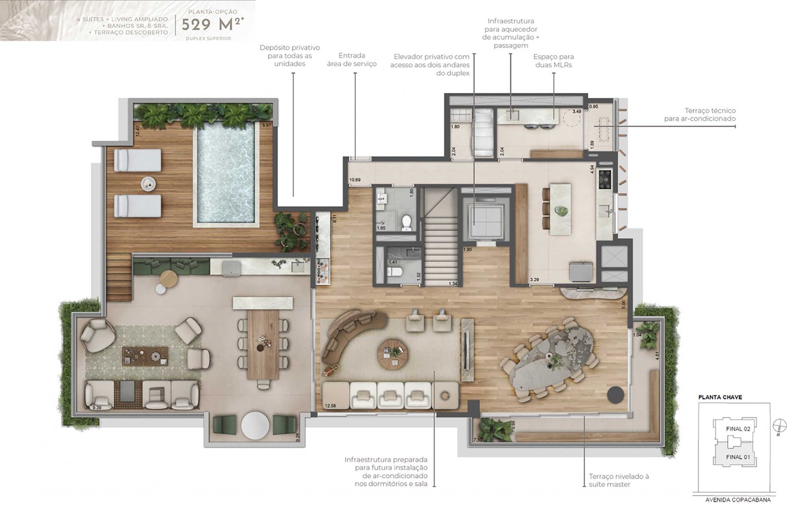 Memorial de Incorporação registrado em 17/09/2024, sob R.3 na matrícula nº 228.434 do Registro de Imóveis de Barueri/SP. O empreendimento está localizado na Alameda Centauro, atualmente sob o número 793 e Avenida Andrômeda, atualmente sob o número 946, Barueri/SP. Incorporadora: DUBAI APC EMPREENDIMENTOS IMOBILIÁRIOS SPE LTDA. (CNPJ 50.133.802/0001-48). Comercialização: DUB Vendas e Assessoria Imobiliária Ltda (Creci: j-33435). Imagens meramente ilustrativas. O imobiliário, os equipamentos das áreas comuns e os acabamentos serão entregues conforme Memorial Descritivo do empreendimento. As perspectivas ilustram a vegetação com porte adulto, que será atingido após a entrega do empreendimento. *As unidades autônomas possuirão apenas infraestrutura (carga e dreno) para a futura instalação de sistema de ar-condicionado, com ponto na sala e dormitórios (de acordo com o Memorial Descritivo da unidade). O(s) equipamento(s) de ar-condicionado e a instalação não serão fornecidos pela incorporadora. Impresso em agosto/2024.